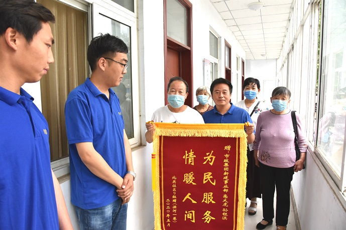 “今年我們家門口這條街道能夠得到整修和提升改造,多虧了咱公司的施工建設……”5月25日,公司來了一批特殊的“客人”,他們一進門就將一面鑲著“為民服務、情暖人間”8個大字的錦旗遞到老街道改造提升項目濱河一巷負責人高大虎的手里。